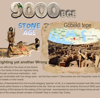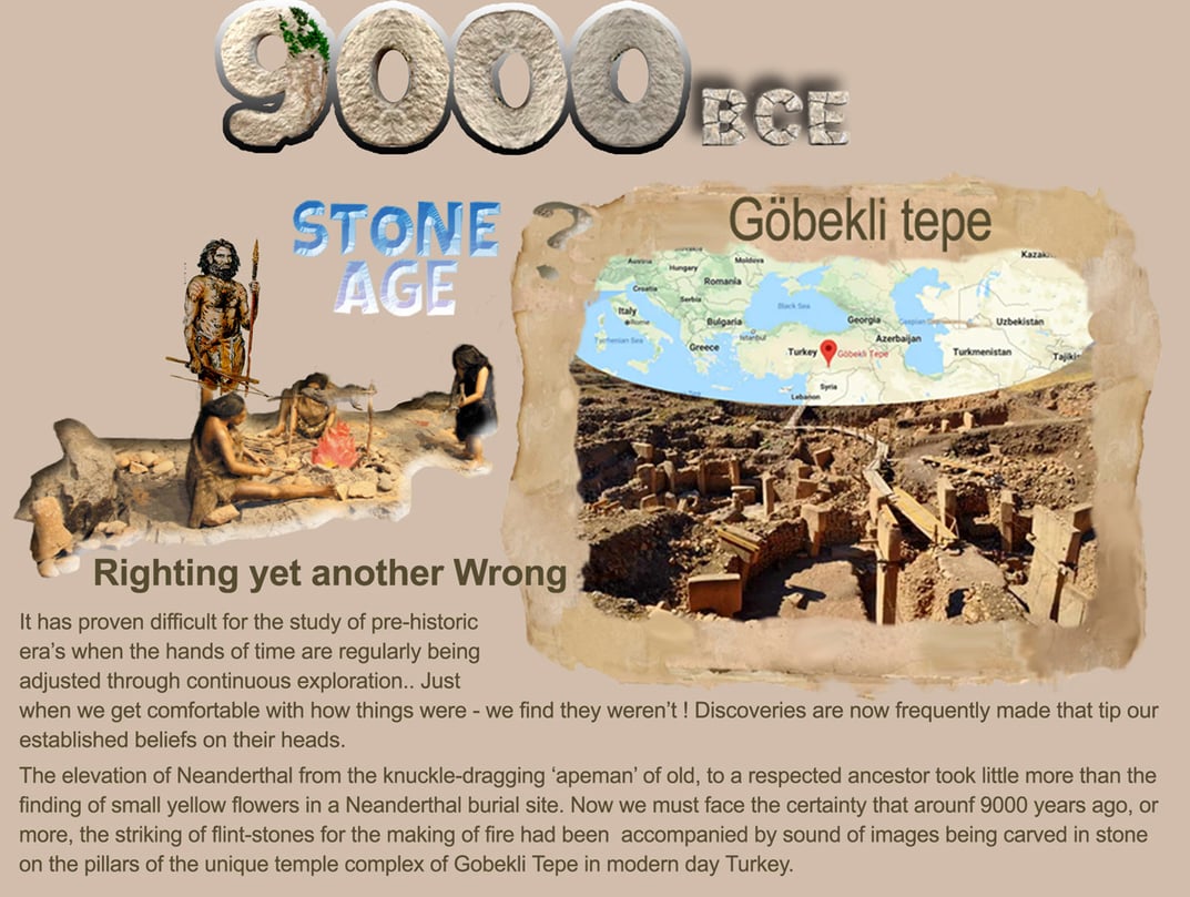 Even with that deep and meaningful dissertation - we still have a problem: At that so-called 'rock-ape' time it seems that not everyone dressed like Barney Rubble. Breaking News: 'Recent Discoveries' show that a nascent civilization of sorts was forming at Catalhoyak in modern day Turkey. That puts a proto-civilization on the same time-zone as true Stone Age people.